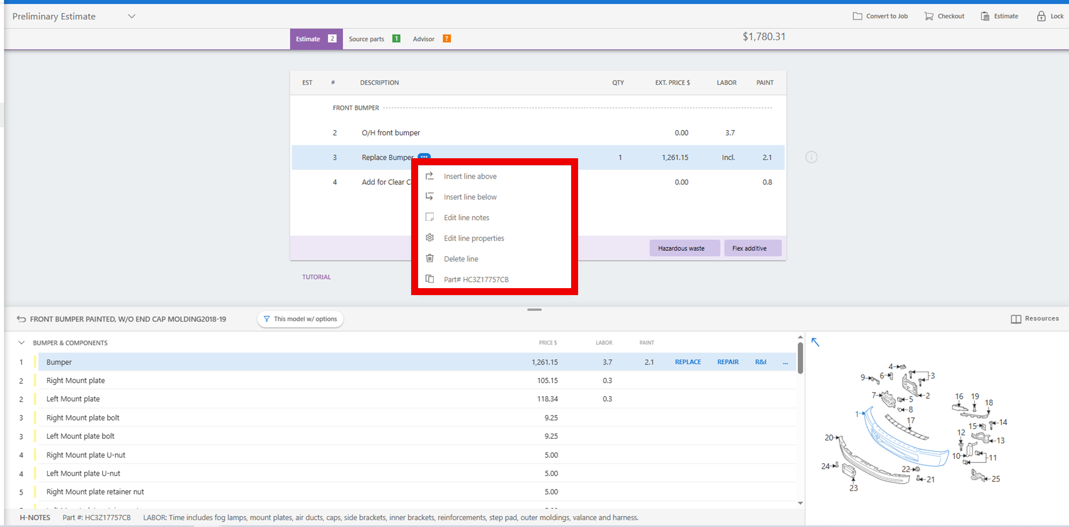Estimate Tip – CCCONE Web – Right Click Mouse Function Estimate Lines