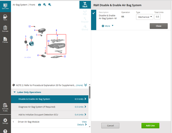 According to Mitchell Cloud Estimating, “the labor allowance for Disable & Enable Air Bag System includes all the steps as outlined in the procedure from the vehicle manufacturer one time.