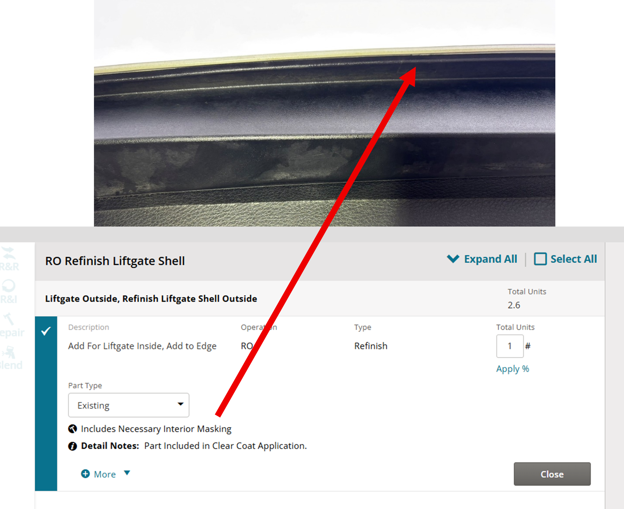 Some vehicle liftgates ie. 2024 Toyota Sienna may require masking the liftgate underside maintaining the original manufacturing color. When required, Mitchell users should identify “Add For Liftgate inside, Add to Edge” or “Add for Underside” in the headnote operation with the following labor note: “Includes Necessary Interior Masking”